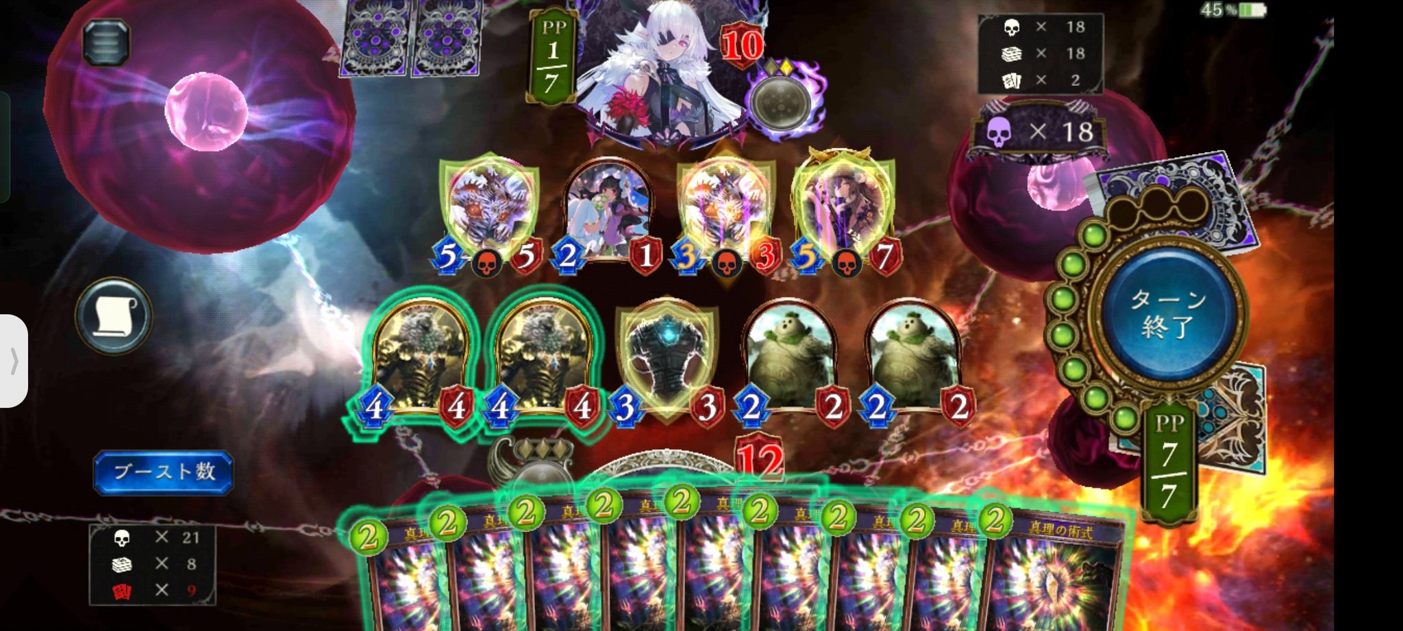 6ターン目の場合《真理の術式》を3枚まで使用できるため、2点バーン効果を2回出せば削り切れる計算だが、それが出ないことはしばしばある。