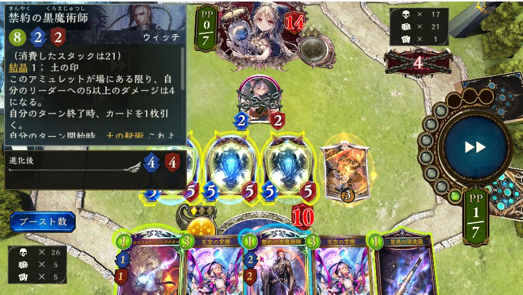 スタック7消費を達成した後は《永生の大魔女》を出して進化させる。